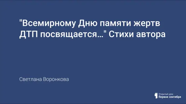 20 ноября отмечается День памяти жертв ДТП. Представлен сценарий урока, посвященный этому дню.