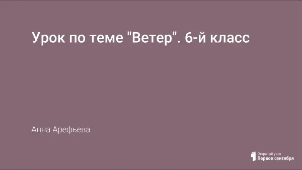Урок формирует понятия «ветер», «роза ветров», представления о причинно-следственных связях между направлением, силой, скоростью ветра и атмосферным давлением, видах ветров; раскрывает значение для природы и человека; формирует навыки работы с картами, таблицами, схемами.