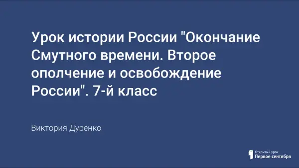 Урок посвящен подъему национального самосознания русского народа и патриотическому движению; учитель рассказывает об этапах освобождения страны от захватчиков. Цель: воспитывает у учащихся чувство национального достоинства, патриотизма и ответственности.