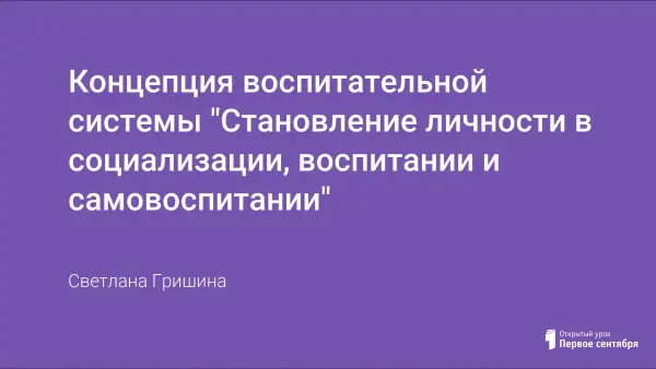 Концепция воспитательной системы "Становление личности в социализации, воспитании и самовоспитании"
