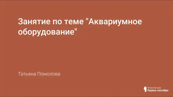 Занятие продолжает цикл занятий для первого года обучения, представляющих программу обучения «Подводный мир» объединения аквариумистики «Голубая Планета» и входит в блок «Благоустройство аквариума». Материал даст представление об аквариумном оборудовании, помогает ориентироваться в его многообразии, функциях, делать обоснованный выбор исходя из собственного опыта и необходимости.