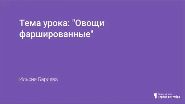 В ходе занятия школьники повторяют вопросы тему подготовки продуктов для фаршировки овощей, технику безопасности в горячем цехе; изучают технологию фарширования овощей; учатся правильно эксплуатировать электроплиту и оценивать качество выполненной работы.