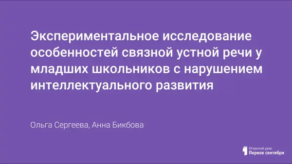 Экспериментальное исследование особенностей связной устной речи у младших школьников с нарушением интеллектуального развития