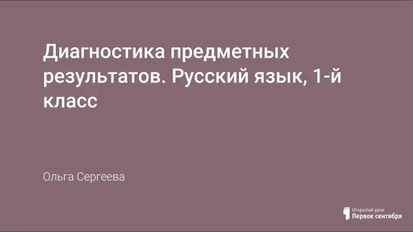 Диагностика предметных результатов по русскому языку в 1-м классе проводится в конце учебного года течение двух уроков. Цель диагностики заключается в определении уровня усвоения предметных результатов обучающимися. Состоит из 6 заданий, включает задания минимального и достаточного уровней.