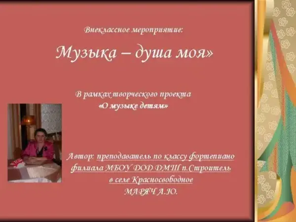 Что значит музыка в жизни? Что мы чувствуем, слушая различную музыку? Она заставляет людей плакать и смеяться; может передать состояние природы, погоды. Под музыку можно танцевать. С музыкой мы сталкиваемся везде: в кино, в театре, на концертах, по телевидению, радио, в повседневной жизни. Музыка заставляет людей думать, переживать, мечтать. Ее трудно не любить и не ценить.
