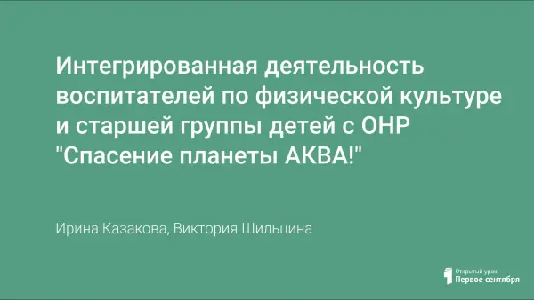 Интегрированная деятельность воспитателей по физической культуре и старшей группы детей с ОНР "Спасение планеты АКВА!"