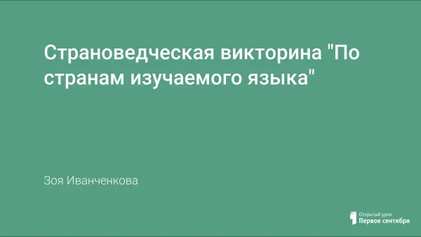 Знакомство с культурой страны изучаемого языка было одной из главных задач еще со времен Античности. На сегодняшний день при интеграции европейских государств и распространении современных информационных технологий это особенно актуальнос. Представленный материал относится к современным технологиям обучения, поскольку стимулирует познавательную активность учащихся при проверке знаний.