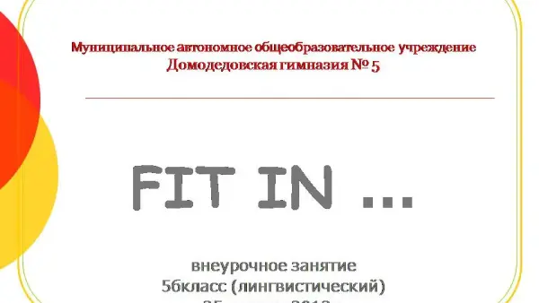 Внеурочное занятие "Fit in…" (немецкий и английский языки). 1-й год обучения