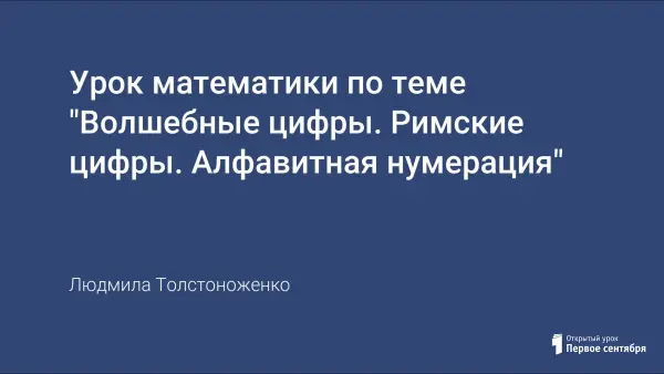Учащиеся знакомятся с цифрами и числами, некоторыми историческими сведениями о различных нумерациях, знакомятся с первыми десятью римскими цифрами. Тренируют мыслительные операции, речь, навыки счета в пределах 9, совершенствуют навыки умения записывать соотношения между числами, представленными различной символикой.