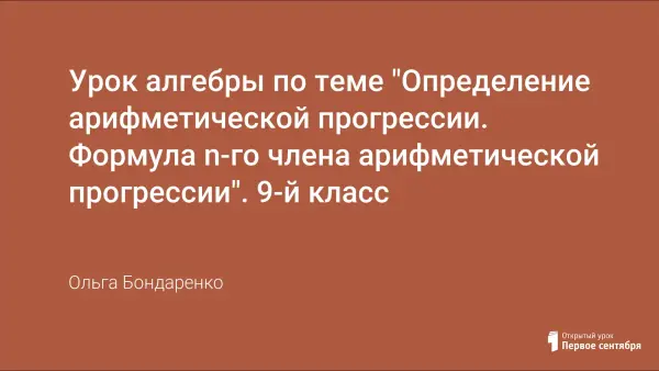 Комбинированный урок алгебры формирует понятие "арифметическая прогрессия" как один из видов последовательностей. Урок знакомит учащихся с определением арифметической прогрессии, формулой n-го члена арифметической прогрессии, учит находить n-й член арифметической прогрессии. Учащиеся вырабатывают умения сравнивать математические понятия, умения наблюдать, подмечать закономерности, строить и интерпретировать математическую модель ситуации.