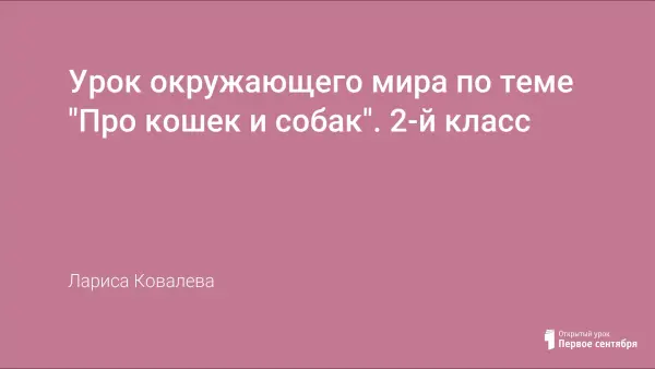 Материал урока раскрывает разнообразие пород кошек и собак, взаимоотношения человека, кошки и собаки, заостряет внимание на ответственности человека за тех, кого приручили.