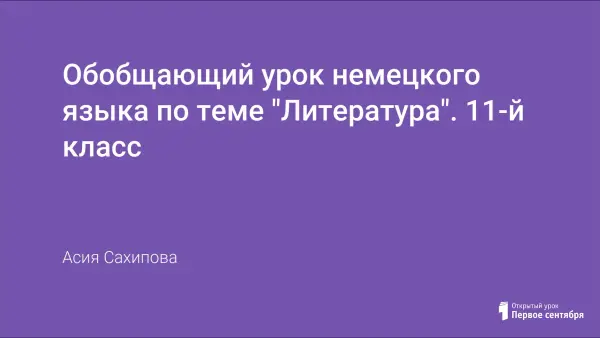 Урок-обобщение знаний с интерактивными средствами обучения, презентацией, проектами активизирует и расширяет потенциальный словарь учащихся, культурно-страноведческий материал, прививает толерантность, патриотизм, уважительное отношение к культуре изучаемого языка. Знакомство с немецкой литературой влияет на мотивацию изучения немецкого языка как средства межкультурной коммуникации.