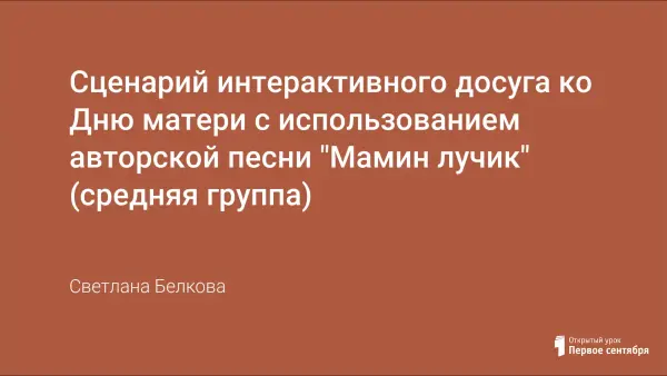 Цель: создание благоприятной атмосферы для детей и родителей в процессе совместного проведения праздника День матери. Задачи: способствовать укреплению детско-родительских отношений; развивать самостоятельность и артистизм у детей; воспитывать у детей доброе, внимательное отношение к маме, стремление ей помогать, радовать ее.