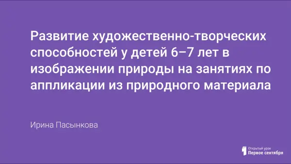 Цель: отобрать доступные для детей 6–7 лет материал; развивать художественно-творческие способности на занятиях аппликацией из природного материала.