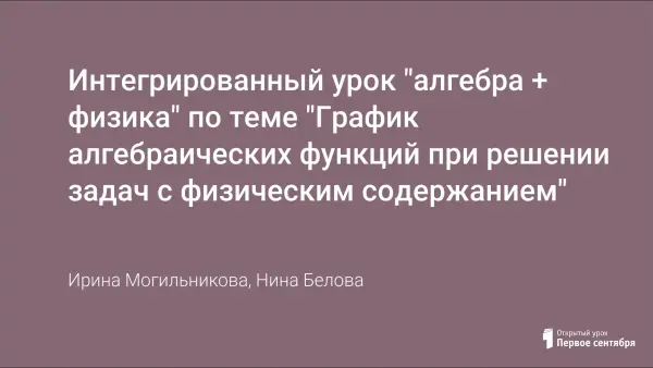 Интегрированный урок "алгебра + физика" по теме "График алгебраических функций при решении задач с физическим содержанием"