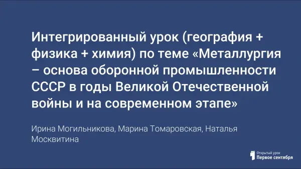 В ходе урока показано, что металлургия является основой промышленности, в целом, и оборонной промышленности, в частности. Учащимся предложены задания по географии, физике и химии, связанные с металлургическим производством. Урок проводился в преддверии Дня 70-летия Победы в Великой Отечественной войне и особое внимание было уделено воспитательным задачам.