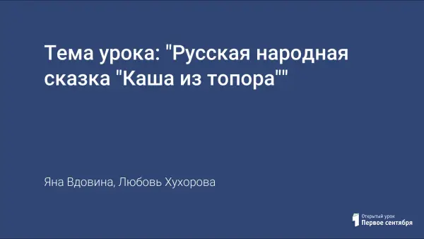 Тема урока: "Русская народная сказка "Каша из топора""