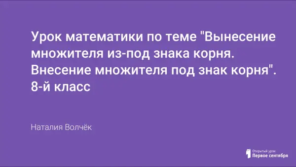 Урок формирует у учащихся способности к рефлексии ошибок самостоятельной работы, фиксированию затруднений при вынесении множителя из-под знака корня и внесении множителя под знак корня.
