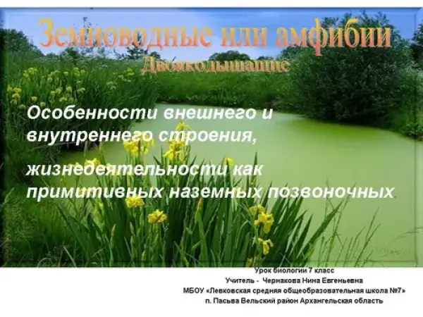Цель урока: познакомить с классификацией класса земноводные, особенностями внешнего и внутреннего строения земноводных; познакомить с происхождением класса; классификацией земноводных; изучить особенности строения земноводных.