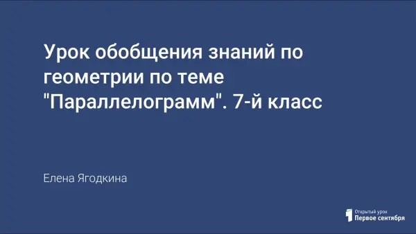 Цели урока: организовать деятельность учащихся по обобщению и систематизации знаний по теме “Параллелограмм и его свойства” при подготовке к контрольной работе; решить типовые задачи для подготовки к контрольной работе.