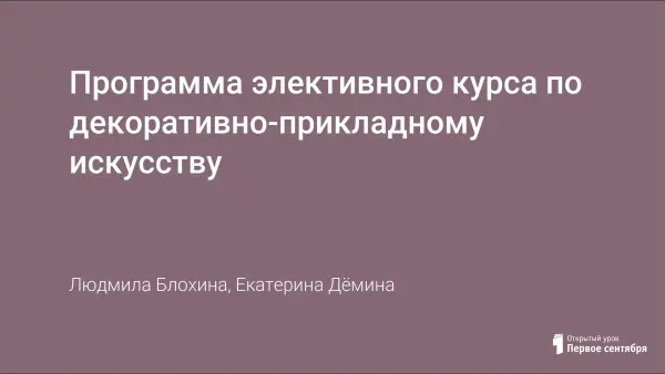 Программа элективного курса по декоративно-прикладному искусству