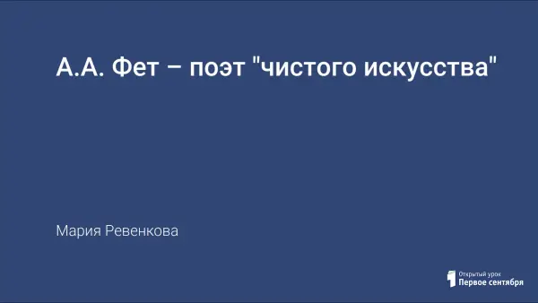 Сущность творчества А.А. Фета – прозрение основ мирового бытия, которые проявляют себя в окружающих природных явлениях, человеческой душе и самом интимном общении двух людей – в любви. Поэт в лирической концепции Фета всемогущ, он способен мир в словах "пересоздать", приоткрыть завесу тайны, говорить о запредельной сущности необъяснимых явлений.