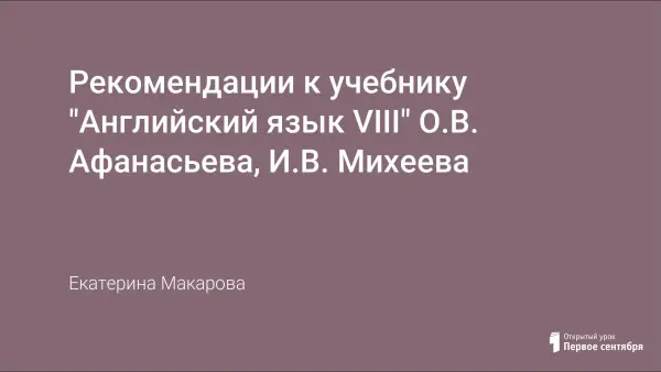 Рекомендации к учебнику "Английский язык VIII" О.В. Афанасьева, И.В. Михеева.
