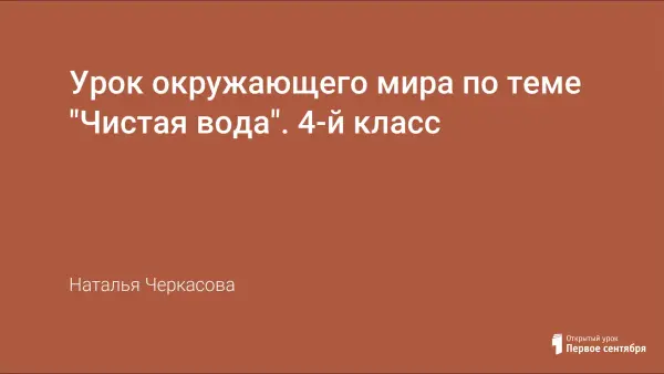 Цель урока: показать, что вода ‒ главный компонент для жизни животных, растений и человека; раскрыть основные факторы загрязнения воды и выработать меры по ее охране; формировать внимательное и бережное отношение к воде как к природному богатству России.
