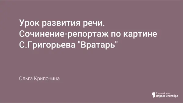 Урок развития речи учит анализировать произведение искусства (Ю.Ракша "Проводы ополченцев"); определять тему, идею и проблему произведения; выражать свою позицию по отношению к сформулированной проблеме, приводить аргументы. Ученики должны научиться правильно отбирать материал, необходимый для написания сочинения.