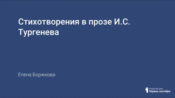 Цель урока: познакомить учащихся 6–7-х классов со стихотворениями в прозе И.Тургенева (опережающее обучение), представить их в более широком объеме, чем предполагает школьная программа.
