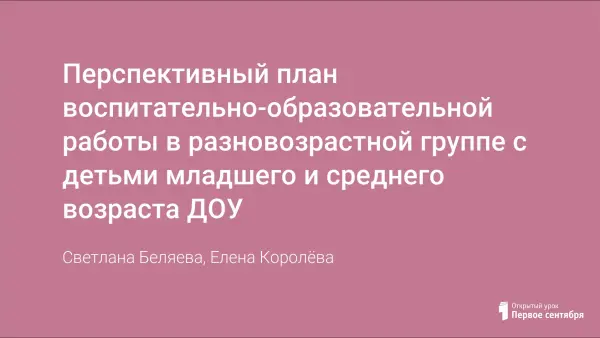 Перспективный план воспитательно-образовательной работы в разновозрастной группе с детьми младшего и среднего возраста ДОУ