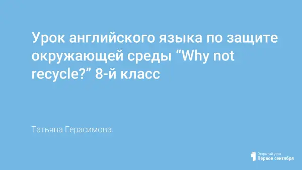 На уроке вводится новая лексика и активизируется уже изученная ранее по теме «Protecting the environment»; расширяются знания учащихся о том, какой вред наносят загрязнения окружающей среде и способах переработки мусора. Урок развивает любознательность, речевую догадку, языковые навыки устной и письменной речи на иностранном языке, смекалку, абстрактное мышление; воспитывает уважительное отношение к окружающей среде.