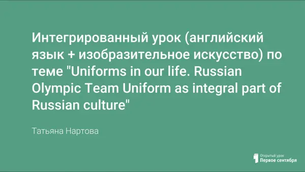 На уроке в 5-м классе дети обсуждают школьную форму и правила ношения одежды в своей школе и других школах. На уроке в 7-м классе учащиеся обсуждают форму спортсменов для олимпиады Сочи-2014, а потом пробуют придумать и нарисовать свой дизайн формы спортсменов.