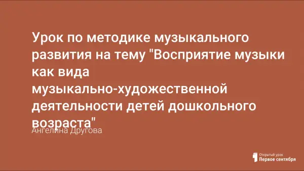 Цель урока: выявить условия для эффективного восприятия музыки детьми дошкольного возраста в педагогике. Оценивается роль воспитателя группы. Студенты узнают о том, что деятельность по восприятию музыки можно и нужно использовать в режиме первой и второй половины дня.