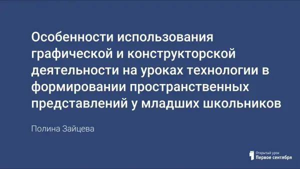 В статье рассмотрены проблема формирования пространственных представлений у детей младшего школьного возраста, выявлена роль уроков технологии в этом процессе и обоснованы возможности использования графической и конструкторской деятельности младших школьников на уроках технологии для повышения уровня сформированности пространственных представлений у детей.