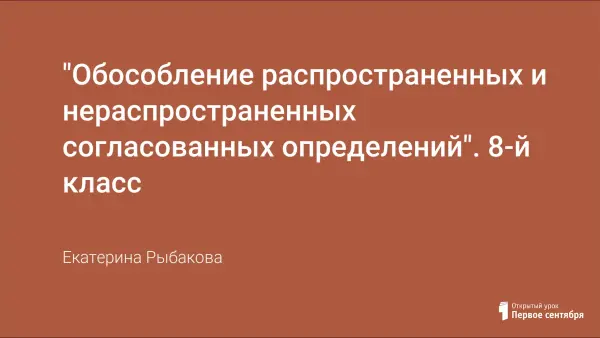 "Обособление распространенных и нераспространенных согласованных определений". 8-й класс