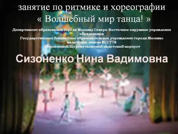 Показательное занятие на базе образовательной программы дополнительного образования детей художественно-эстетической направленности «Хореографическое искусство» для детей 2-го года обучении. Во время занятия показывается техничность, отрабатываются танцевальные навыки. Урок сопровождается экскурсом в историю танцевального искусства, знакомит учеников с балетом П.И.Чайковского «Щелкунчик».