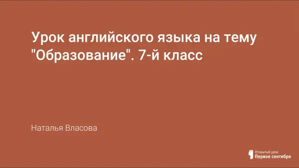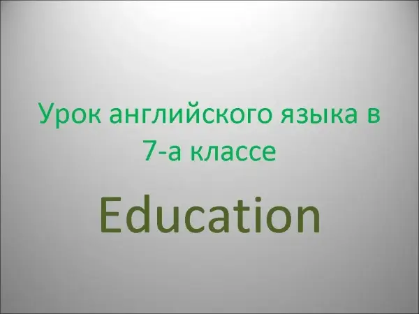 Урок на тему "Образование" для учащихся 7-го класса является уроком на закрепление пройденного материала. У учащихся формируются умения и навыки монологической и диалогической речи, работы в группах, развивается навык понимания речи на слух. Учащиеся готовят свои презентации по данной теме. На уроке отрабатывается грамматический материал. Учитель использует презентацию по ходу урока.