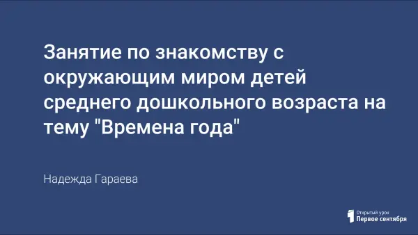 Цель занятия: закрепить представления об основных признаках времен года, учить находить их и выражать в речи. Занятие интегрированного типа, включает в себя знакомство с художественной литературой, изобразительной деятельностью. На занятии используются мультимедийные средства, дидактическая настольная игра. Занятие носит обобщающий, итоговый характер после знакомства детей с временами года.