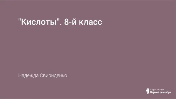 Цель урока: формирование представлений о кислотах, изучение классификации кислот, их химических свойств, применение и нахождение в природе; составляется формула химических соединений по таблице растворимости.