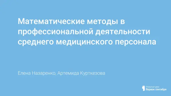 Математические методы в профессиональной деятельности среднего медицинского персонала