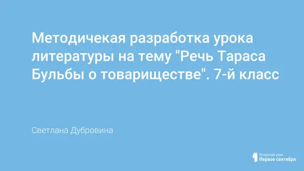 Цели урока: рассмотреть речь Тараса Бульбы с риторических позиций, показать её композиционное значение и роль для раскрытия характера Тараса Бульбы, познакомить с элементами риторического анализа речи, продолжить формирование собирать и систематизировать материал для характеристики литературного героя; воспитывать чувство любви к Родине.
