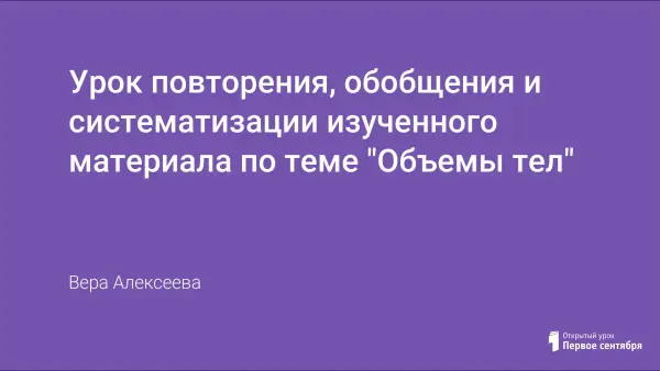 Разработка урока по теме «Объёмы тел» основана на реальных заданиях открытого банка ЕГЭ по математике и пособий для подготовки к ЕГЭ. На конкретных задачах отрабатываются навыки нахождения объёмов тел и применение метода объёмов тел для решения задач профильного уровня.