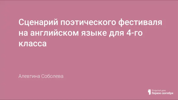 Учащиеся знакомятся с образцами английской поэзии и фольклора, такими, как лимерик и скороговорки, современными стихами. Сценарий проводится на неделе или декаде английского языка, как внеклассное мероприятие на английском языке.
