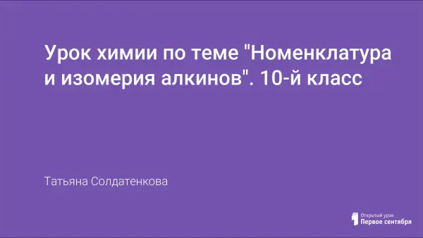 На уроке рассматриваются следующие пункты плана характеристики органических веществ: номенклатура и изомерия. Учебным материалом служит номенклатура и изомерия алкинов, алгоритм составления названий (прямой и обратный) и формул изомеров. Важная составляющая урока – работа с алгоритмами.
