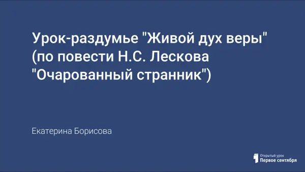 Урок помогает учащимся осмыслить художественное воплощение замысла, о котором Лесков писал: «Хотя бы то небольшое число трех праведных, без которых «несть граду стояния»; раскрыть образ Ивана Флягина как праведника Земли русской; задуматься над такими нравственными понятиями, как доброта, милосердие, чуткость, человечность, смыслом жизни человеческой.