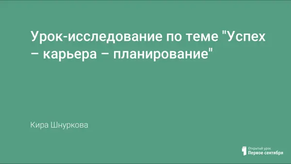 Урок может быть проведен в качестве обобщающего по теме «Личность и общество», как самостоятельный урок-исследование по теме «Быть личностью», тематический классный час «Я и моя профессия». В ходе урока у учащихся формируются знания о понятиях «успех», «карьера», «планирование».