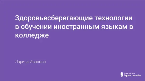 В статье описаны здоровьесберегающие технологии, которые применяются на уроках английского языка в колледже.