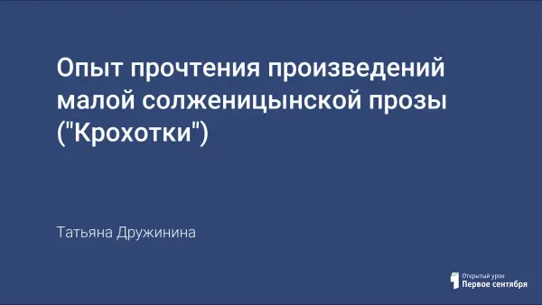 Опыт прочтения произведений малой солженицынской прозы ("Крохотки")