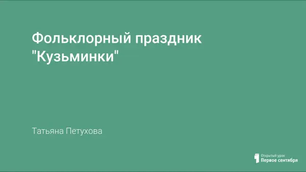 Мероприятие знакомит с обрядовым праздником «Кузьминки», закрепляет знания о быте, обычаях народа.